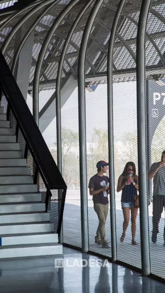 When it came time to talk about the perimeter mesh, the concept was for it to have a shape and “movement” like a soccer net and, above all, to provide security, ventilation, and maintain aesthetics. We immediately looked for the perfect product to achieve this. We made several tests and proposals, and in the end, it was concluded that nothing was better than Classic Protecto-Reja for this particular area.
